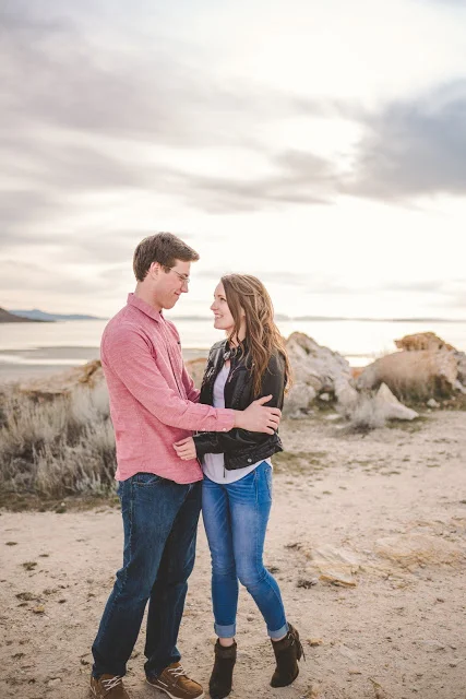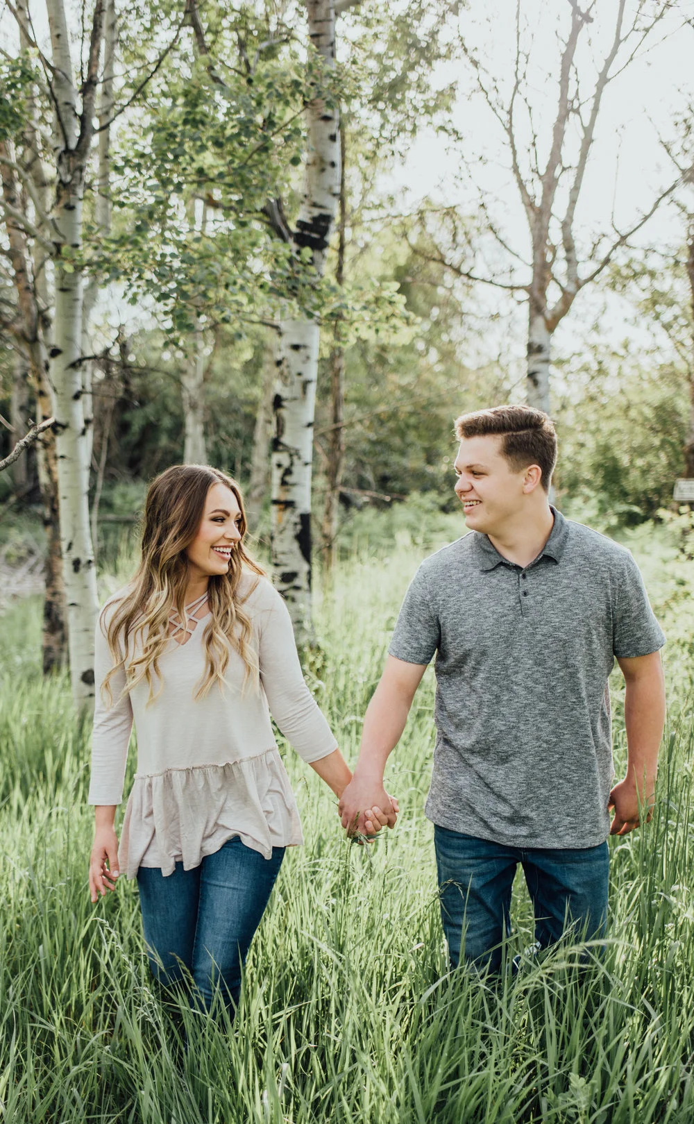 I loved Maddie & Tanner's set of outfits for their engagement session! They matched each other in color tones, the patterns on their clothes weren't distracting or overwhelming, they wore light colors, and they looked fabulous!